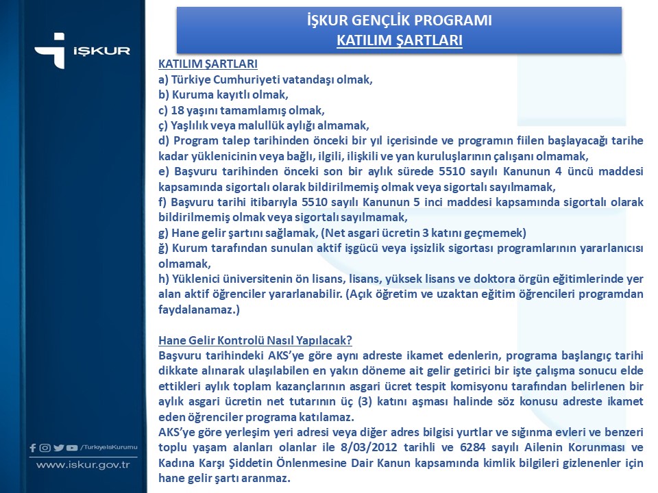 Başvuru linki: https://genclik.iskur.gov.tr/