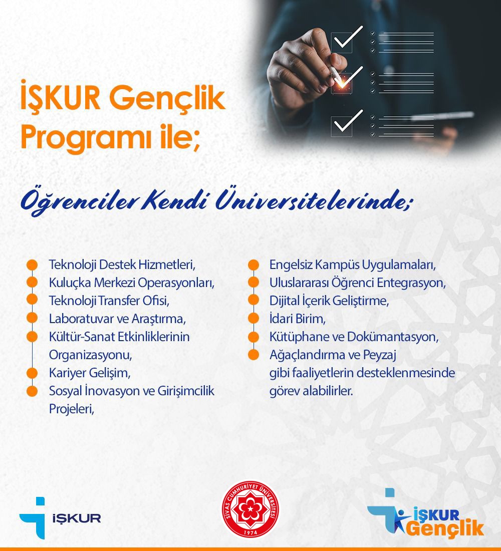 Araştırma Merkezi koordinesinde İŞKUR Gençlik Programı düzenlenecektir. İŞKUR Gençlik Programı,