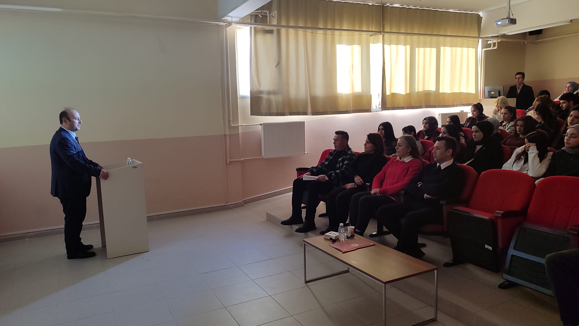 03.12.2025 tarihinde Okulumuz Konferans Salonu'nda, Koyulhisar İlçe Müftülüğü tarafından Meslek Yüksekokulumuz öğrencilerine yönelik ‘Neslin Korunması ve Evliliğin Önemi’ konulu konferans düzenlenmiştir. Konferansa Koyulhisar İlçe Müftüsü Murat GEBEŞOĞLU konuşmacı olarak katılım sağlamıştır. Konferansa katılım sağlayan Koyulhisar İlçe Müftüsü Murat GEBEŞOĞLU'na, tüm öğrencilerimize, çalışma arkadaşlarımıza ve akademik personelimize teşekkür ederiz.