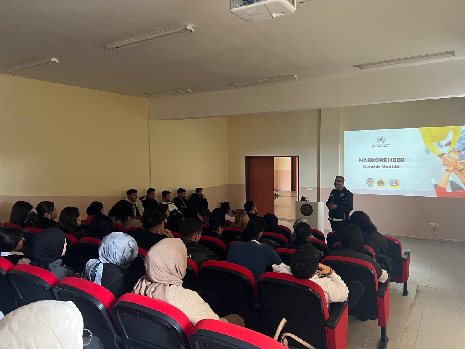 17.12.2025 tarihinde saat 13:00 da Okulumuz Konferans Salonu'nda, Koyulhisar İlçe Emniyet Amirliği tarafından Meslek Yüksekokulumuz öğrencilerine yönelik ‘Narkorehber Gençlik Eğitimi’ konulu konferans düzenmiştir. Konferansa konuşmacı olarak Koyulhisar İlçe Emniyet Amirliği Polis Memuru Ali BERTAN katılım sağlamıştır. Konferansa katılım sağlayan konuşmacı Ali BERTAN, tüm öğrencilerimiz, çalışma arkadaşlarımız ve akademik personelimize teşekkür ederiz.